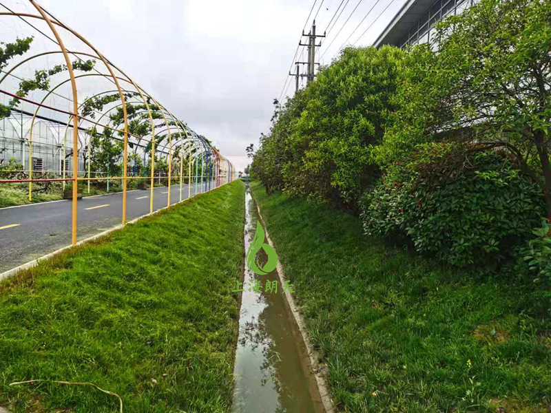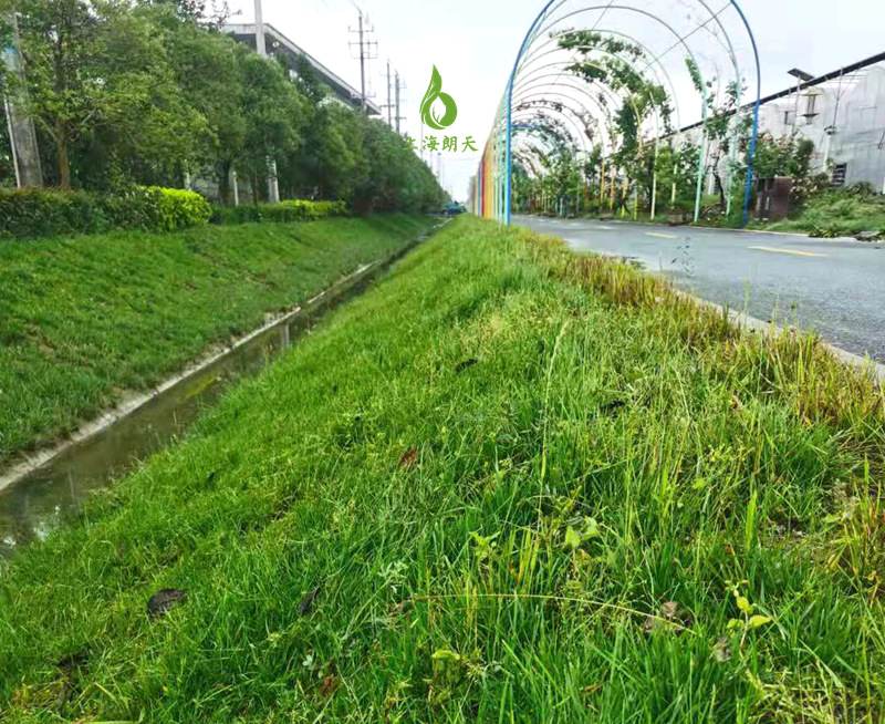 江蘇國家級現(xiàn)代農(nóng)業(yè)產(chǎn)業(yè)園是早年建成的傳統(tǒng)混凝土護(hù)岸,在邊坡防護(hù)上起到了積極作用,但傳統(tǒng)混凝土也已逐漸老化,不夠生態(tài),且三面光河道景觀效果差,該項(xiàng)目采用了現(xiàn)澆生態(tài)綠化混凝土進(jìn)行生態(tài)改造,直接在原硬質(zhì)護(hù)岸的基礎(chǔ)上現(xiàn)澆了12公分的生態(tài)綠化混凝土,生態(tài)綠化混凝土上覆了6公分的種植土鋪草皮,6個(gè)月后再到該項(xiàng)目挖開看,草根已經(jīng)完全穿透綠化混凝土。